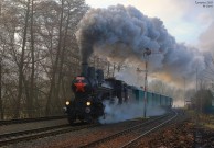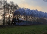 Opět po roce byly v Ústeckém kraji vypraveny zvláštní parní vlaky na Švestkové dráze, dráze spojující Most a Lovosice. Na snímku s ranním Os10701 stoupá k bývalé zastávce Skršín "Bulík" NTM